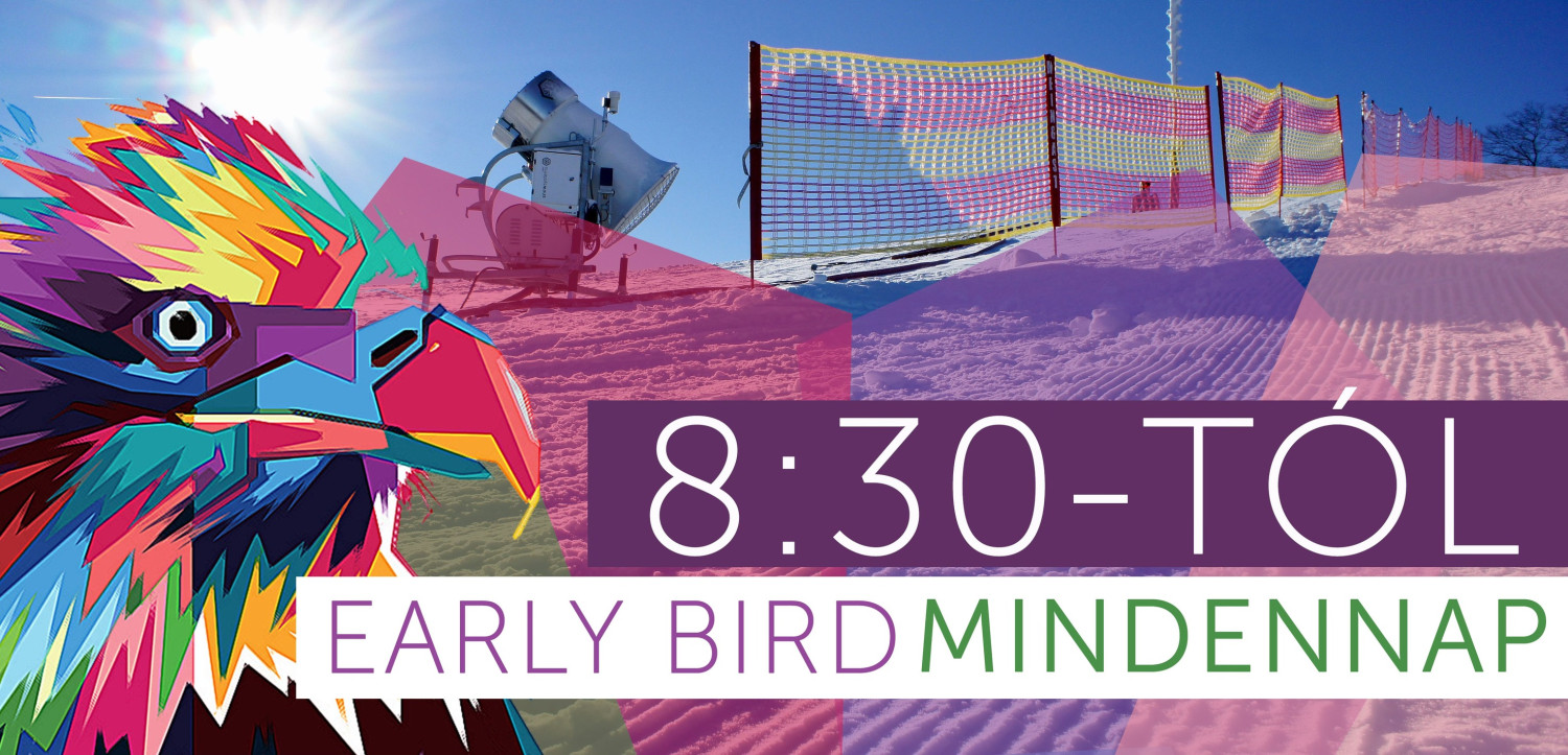 EARLY BIRD mindennap! 8:30-kor indulnak a síliftek mindennap, az éjszakai fagyokhoz igazítva tovább csúszhatsz a kifagyott pályákon, 3km hosszan! 1 órával korábbra hoztuk a nyitvatartást, így hétfőtől 8:30-15:30 vagyunk nyitva.